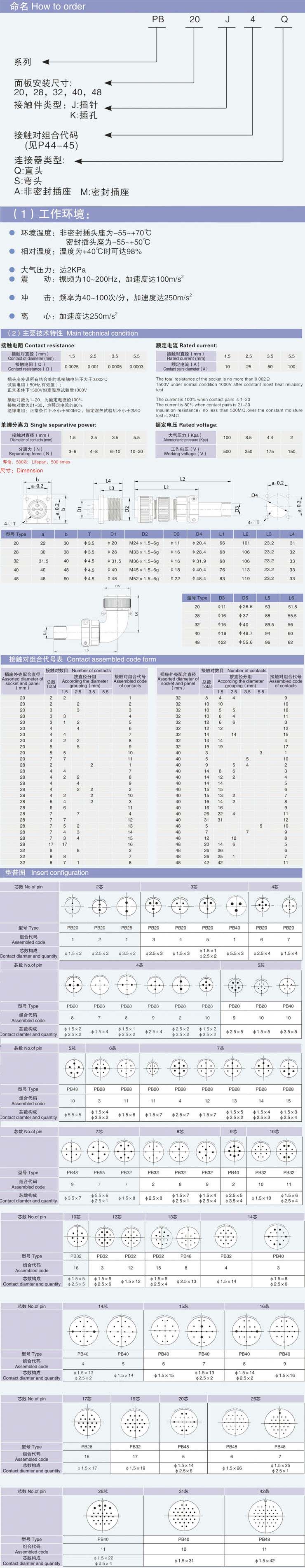 PB serles connector is designed and produced by our company Light weight,varlous specifications,well-sealed,thread connection are major features.aluminum housing,Cooper alloy contacts with silver plating,reslstance against corroslon good electrlc conductlvlty and mechanical rigidity,can be the ideal substitute for the slmilar products from the overseas.it can be installed on the panel or cable in line.