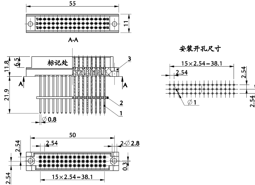 J18系列矩形電連接器是根據(jù)GJB1438A(MIL-C-55302)標(biāo)準(zhǔn)研制生產(chǎn),完全符合HB6382的技術(shù)要求,并參照IEC-603-2及DIN41612的標(biāo)準(zhǔn)要求。2.54mm標(biāo)準(zhǔn)網(wǎng)格間距設(shè)計(jì),具有防誤插的編碼附件。有雙曲面線簧插孔接觸體結(jié)構(gòu),有浸焊,焊接,繞接等端接形式。該系列矩形連接器廣泛應(yīng)用于電子及無(wú)線電裝置中的電路連接。